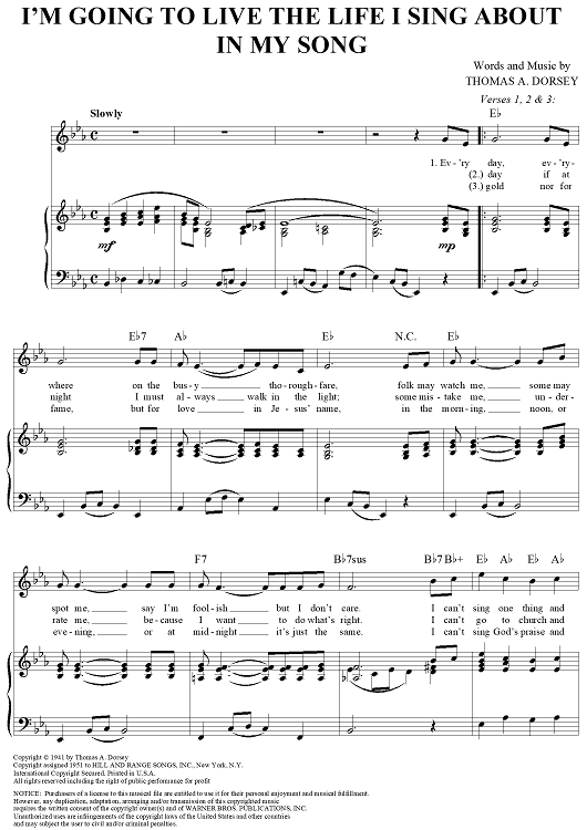 Digital Sheet Music for I'm Going to Live the Life I Sing about in My Song by Mahalia Jackson, Thomas A. Dorsey scored for Piano/Vocal/Chords; id:356051