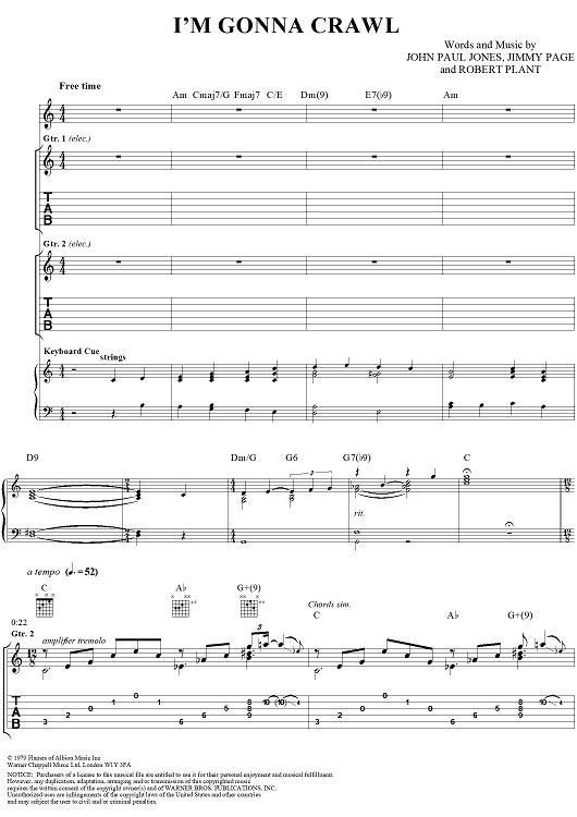 "I'm Gonna Crawl" Sheet Music by Led Zeppelin
