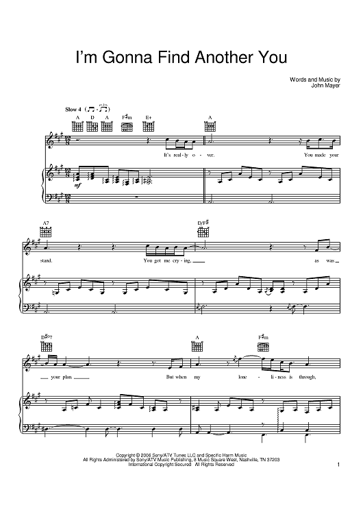 Digital Sheet Music for I'm Gonna Find Another You by John Mayer scored for Piano/Vocal/Chords; id:396097