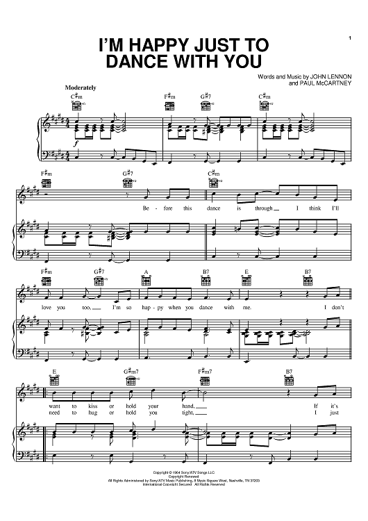 Digital Sheet Music for I'm Happy Just To Dance With You by Paul McCartney, The Beatles, John Lennon scored for Piano/Vocal/Chords; id:373064