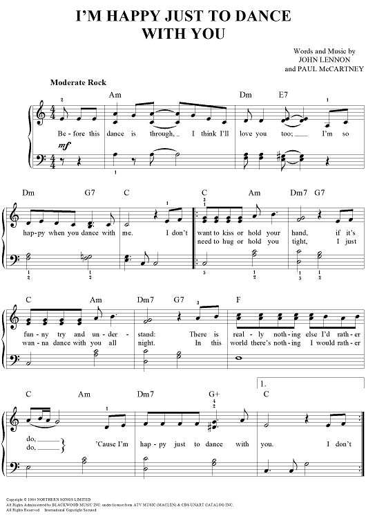 "I'm Happy Just To Dance With You" Sheet Music by The Beatles
