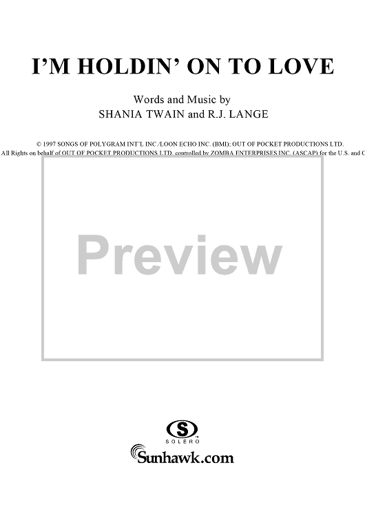 "I'm Holdin' on to Love (To Save My Life)" Sheet Music by Shania Twain