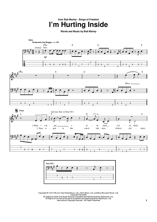 Digital Sheet Music for I'm Hurting Inside by Bob Marley scored for Bass Tab; id:371300