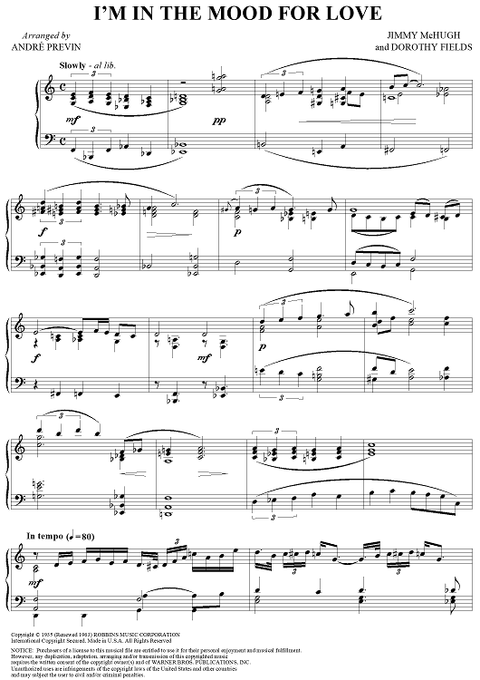 Digital Sheet Music for I'm in the Mood for Love by Dorothy Fields, Jimmy McHugh, Andre Previn scored for Piano Solo; id:313643
