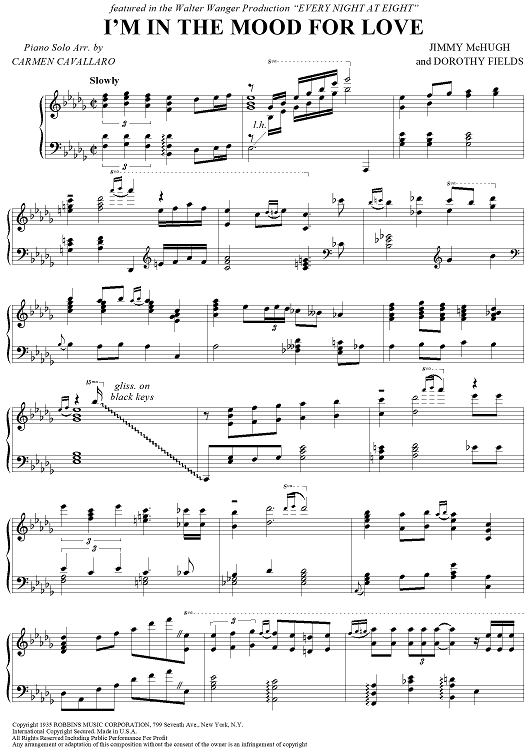 Digital Sheet Music for I'm in the Mood for Love by Dorothy Fields, Jimmy McHugh, Carmen Cavallaro scored for Piano Solo; id:364990