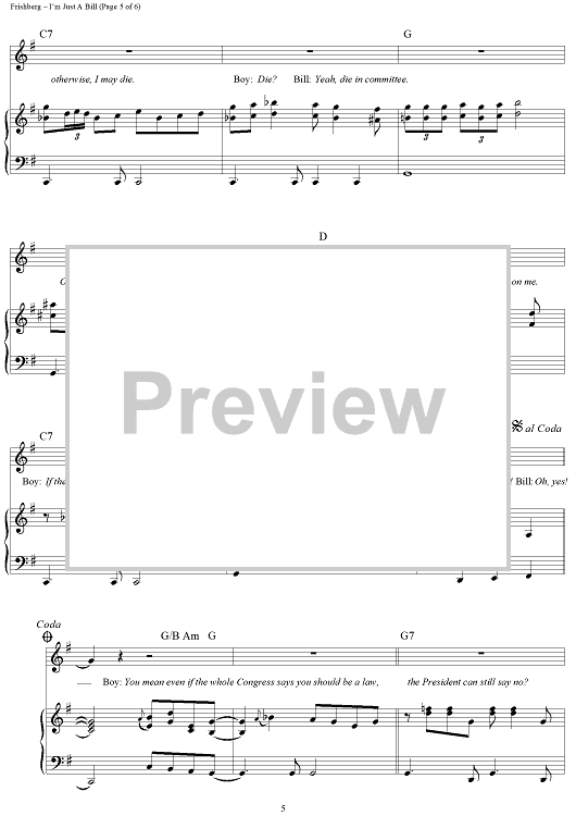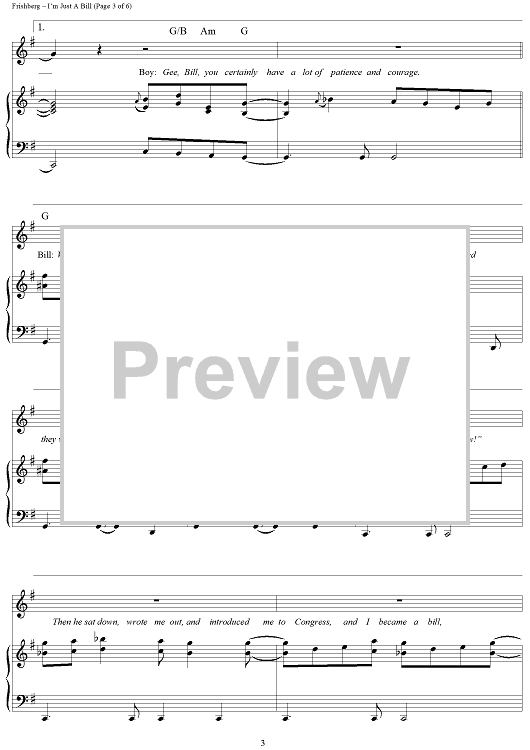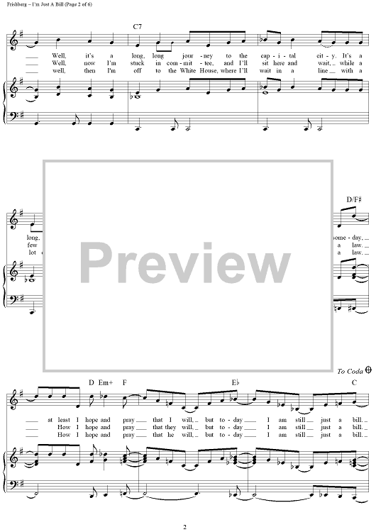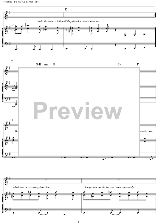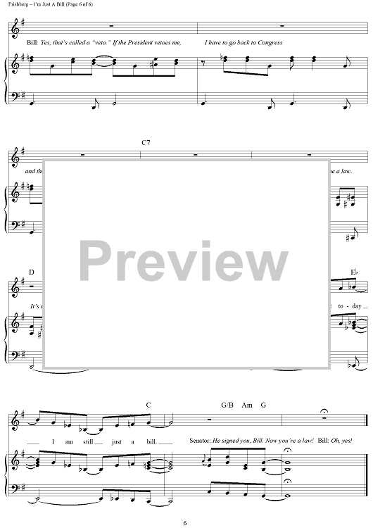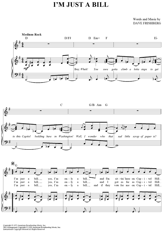 Digital Sheet Music for I'm Just A Bill by Dave Frishberg scored for Piano/Vocal/Chords; id:458326