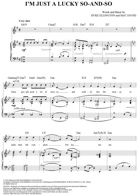 "I'm Just a Lucky So-And-So" Sheet Music by Duke Ellington