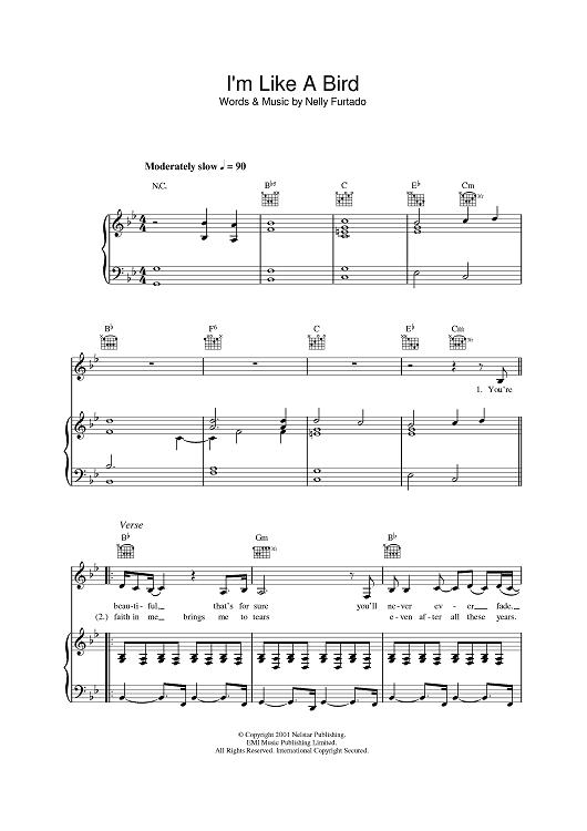 Digital Sheet Music for I'm Like A Bird by Nelly Furtado scored for Piano/Vocal/Chords; id:387851