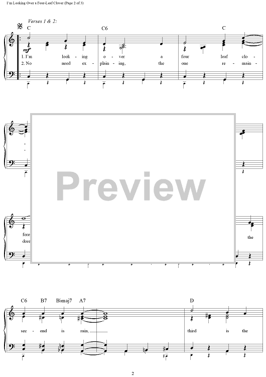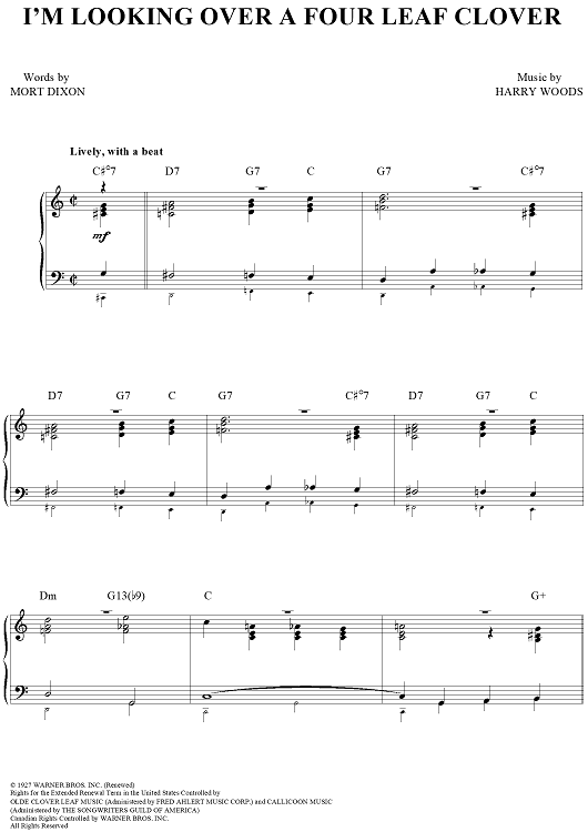 Digital Sheet Music for I'm Looking Over a Four-Leaf Clover by Mort Dixon, Harry Woods, Art Mooney scored for Piano/Vocal/Chords; id:263472