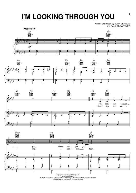 Digital Sheet Music for I'm Looking Through You by Paul McCartney, The Beatles, John Lennon scored for Piano/Vocal/Chords; id:373065