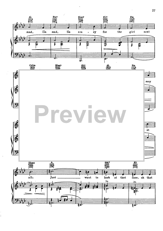 Digital Sheet Music for I'm Mad About The Girl Next Door by Mack Gordon, Josef Myrow, Dan Dailey scored for Piano/Vocal/Chords; id:423090