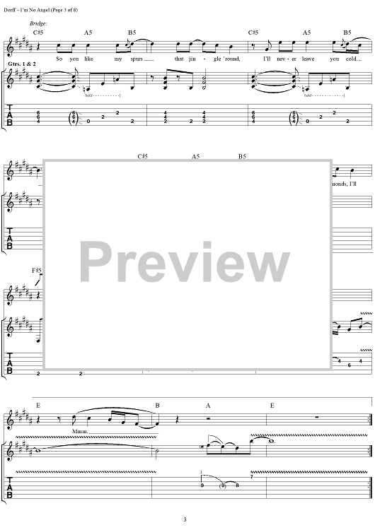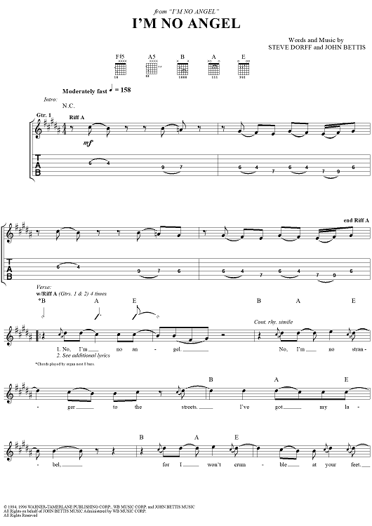 Digital Sheet Music for I'm No Angel by Steve Dorff, Gregg Allman, John Bettis scored for Guitar Tab/Vocal; id:113590