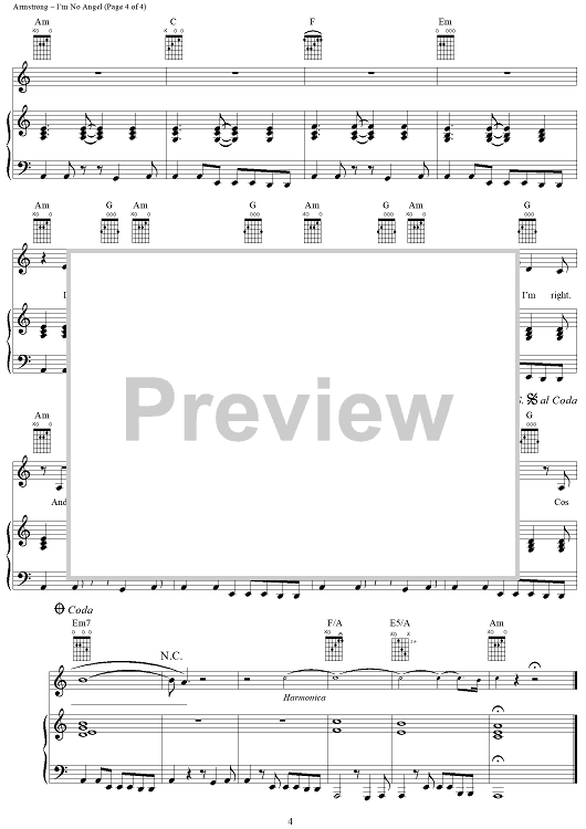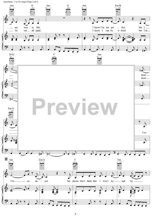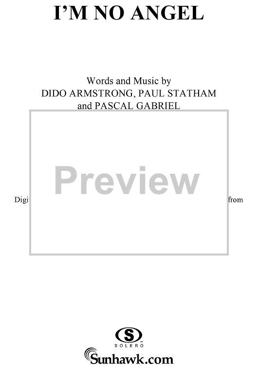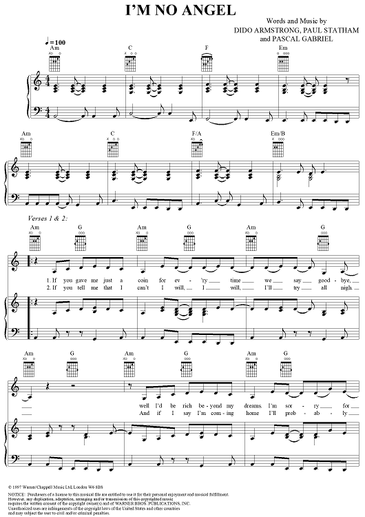 Digital Sheet Music for I'm No Angel by Pascal Gabriel, Paul Statham, Dido Armstrong, Dido scored for Piano/Vocal/Chords; id:285331