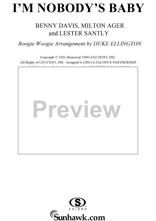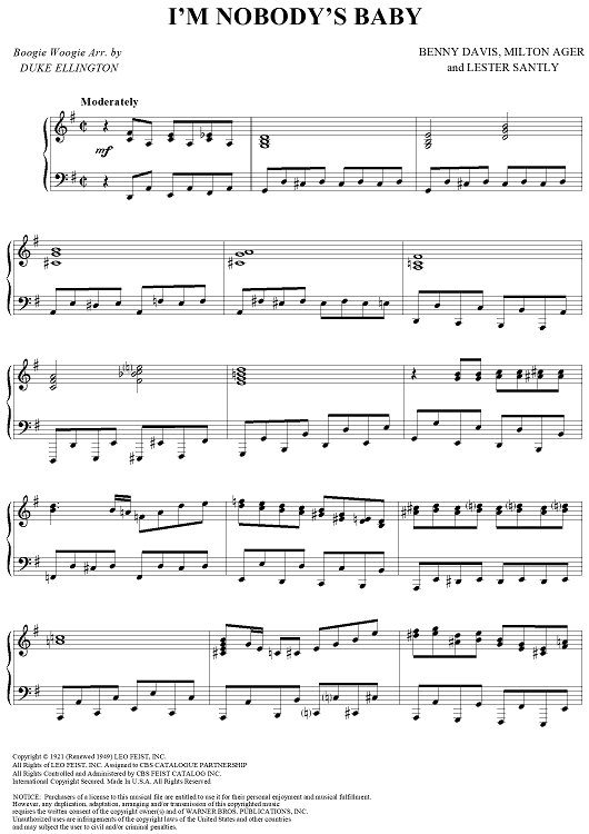 Digital Sheet Music for I'm Nobody's Baby by Duke Ellington, Milton Ager, Benny Davis, Lester Santly scored for Piano Solo; id:120036