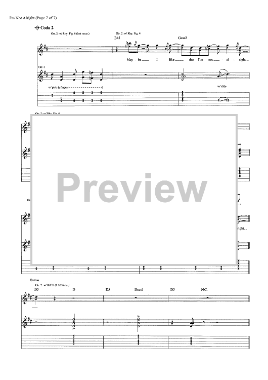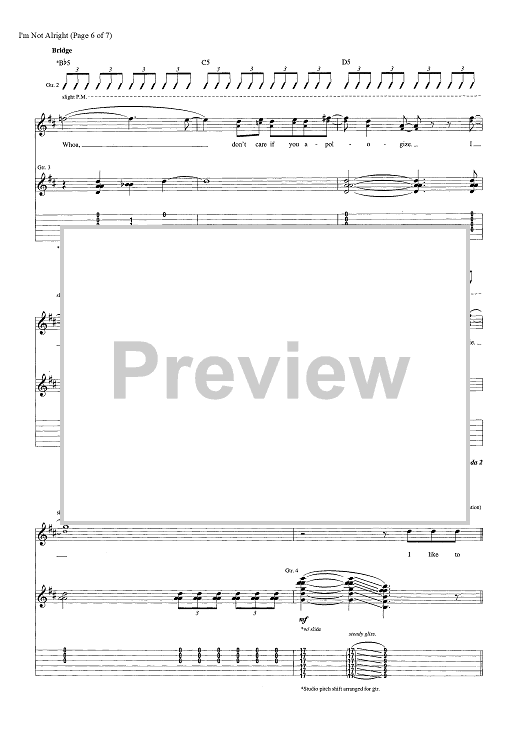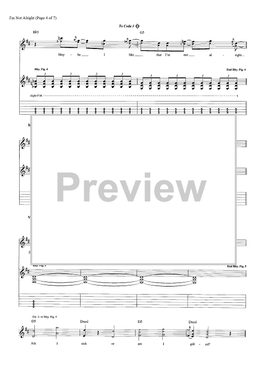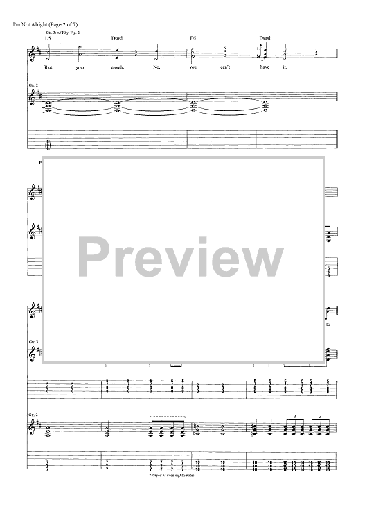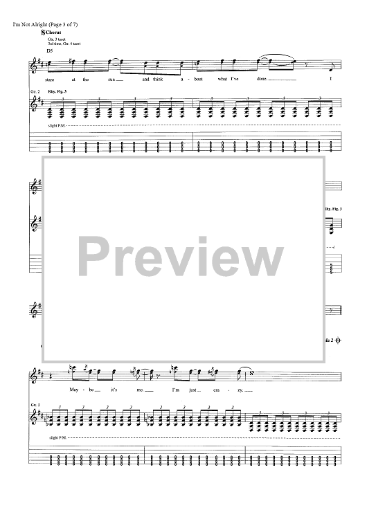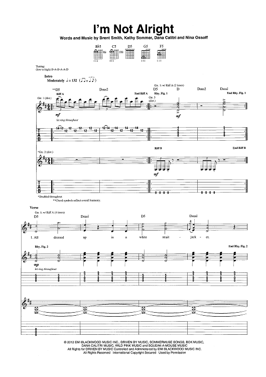 Digital Sheet Music for I'm Not Alright by Dana Calitri, Nina Ossoff, Shinedown, Brent Smith, Kathy Sommer scored for Guitar Tab; id:463849