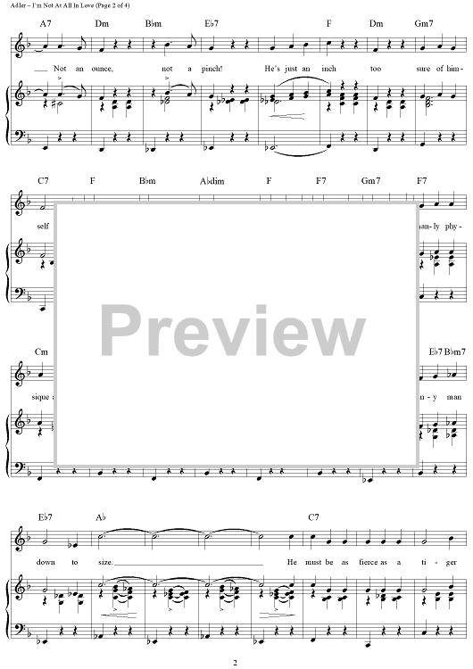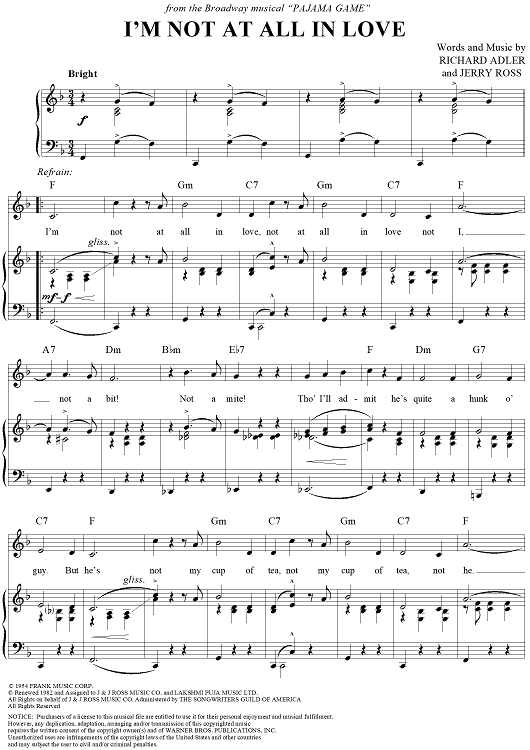 Digital Sheet Music for I'm Not At All In Love by Jerry Ross, Richard Adler scored for Piano/Vocal/Chords; id:132898