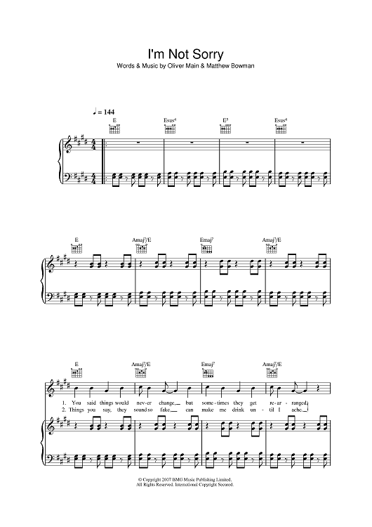 Digital Sheet Music for I'm Not Sorry by Matthew Bowman, Oliver Main, The Pigeon Detectives scored for Piano/Vocal/Chords; id:401208