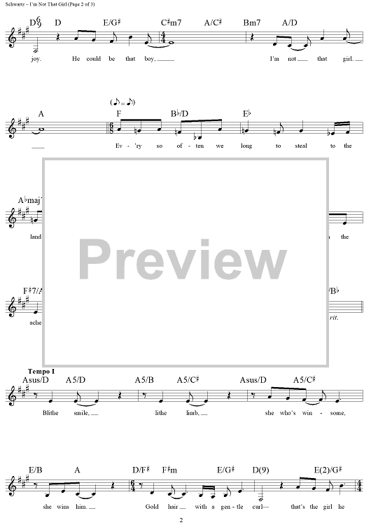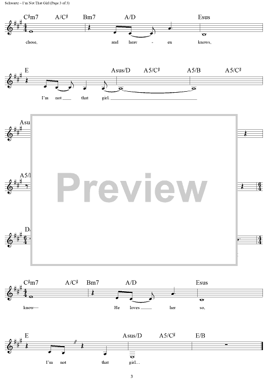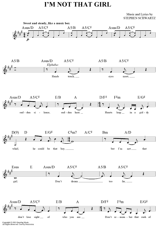 Digital Sheet Music for I'm Not That Girl by Stephen Schwartz scored for Lead Sheet; id:457764