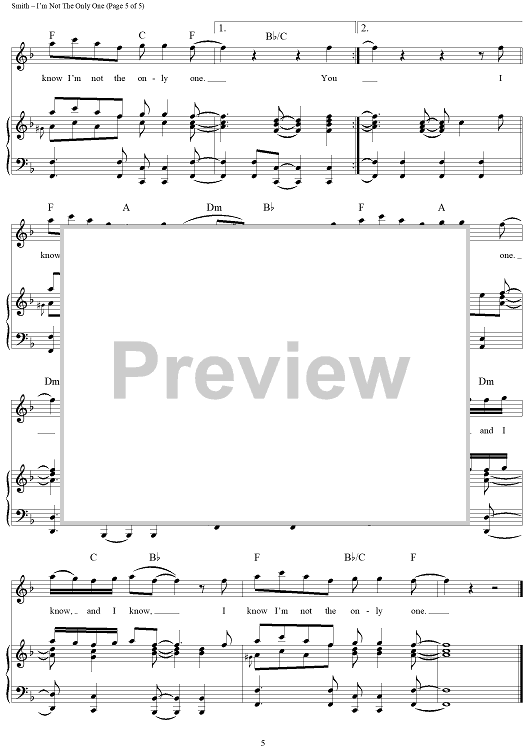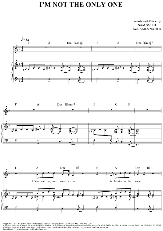 Digital Sheet Music for I'm Not The Only One by Sam Smith, James Napier scored for Piano/Vocal/Chords; id:444092