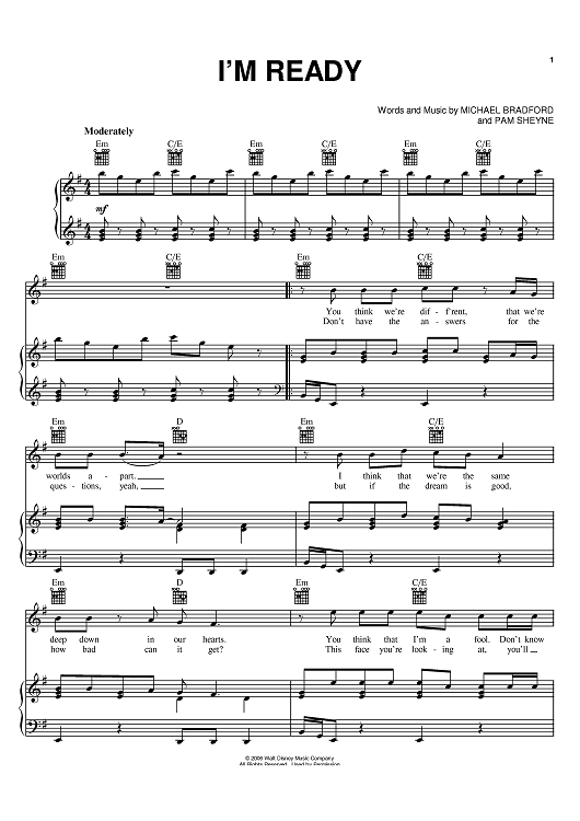 Digital Sheet Music for I'm Ready by Michael Bradford, Pam Sheyne, Drew Seeley scored for Piano/Vocal/Chords; id:397841