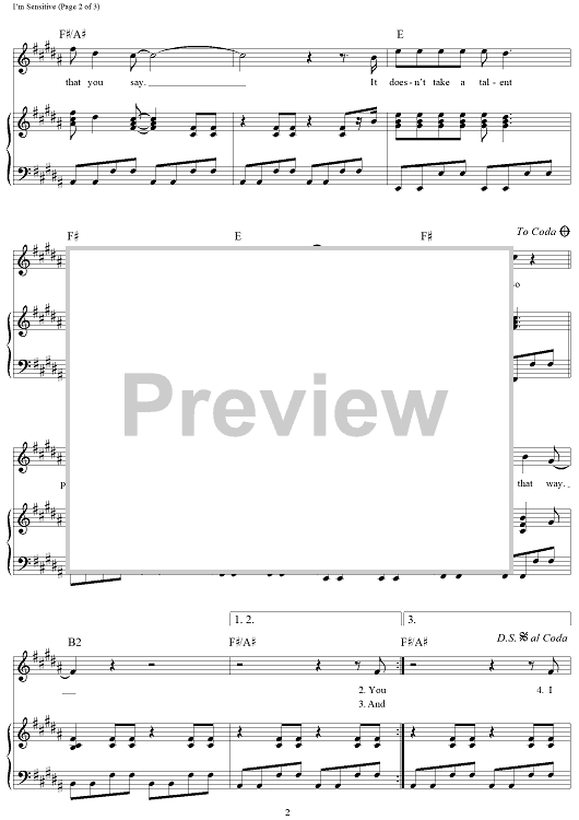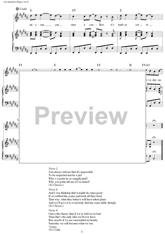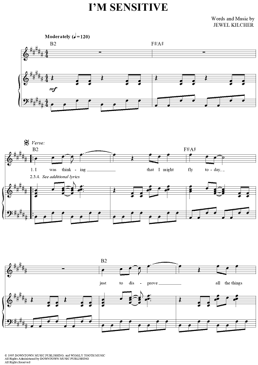 Digital Sheet Music for I'm Sensitive by Jewel scored for Piano/Vocal/Chords; id:109000