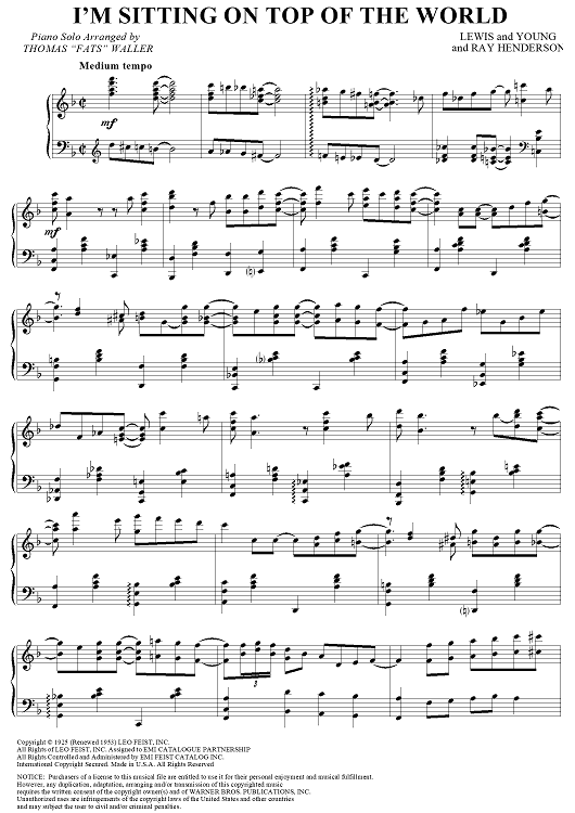 Digital Sheet Music for I'm Sitting on Top of the World by Fats Waller, Ray Henderson, Samuel M. Lewis, Joseph Young scored for Piano Solo; id:116358