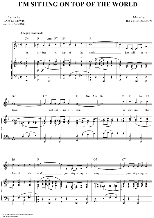 Digital Sheet Music for I'm Sitting on Top of the World by Ray Henderson, Samuel M. Lewis, Joseph Young scored for Piano/Vocal/Chords; id:116495