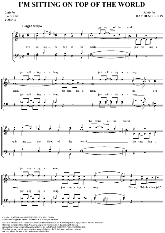 "I'm Sitting on Top of the World" Sheet Music by Ray Henderson
