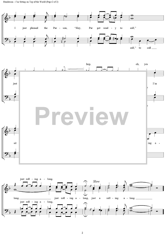 Digital Sheet Music for I'm Sitting on Top of the World by Ray Henderson, Joe Young, Samuel M. Lewis scored for Barbershop Quartet; id:240638