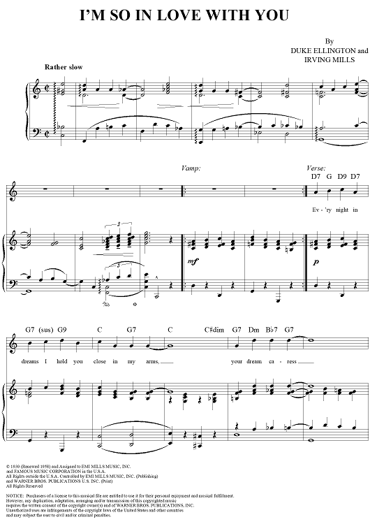Digital Sheet Music for I'm So in Love with You by Duke Ellington, Irving Mills scored for Piano/Vocal/Chords; id:235058