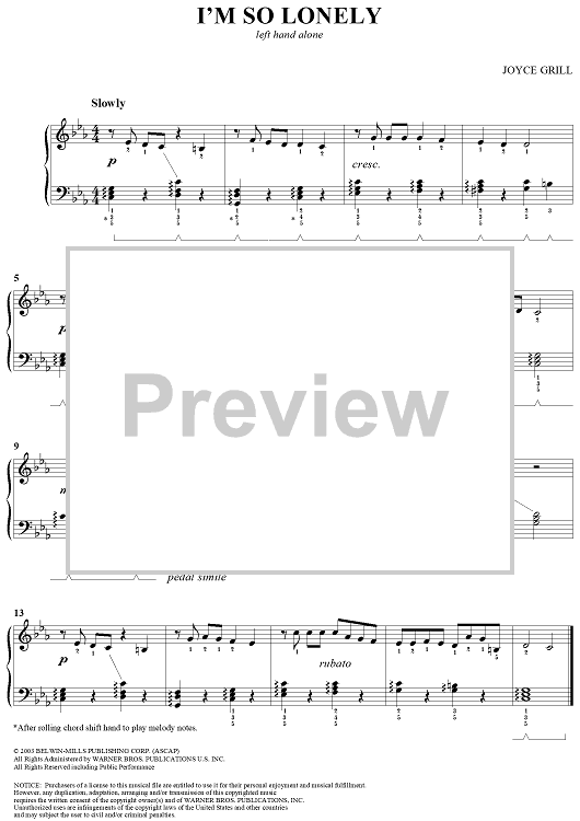 "I'm So Lonely" Sheet Music by Joyce Grill