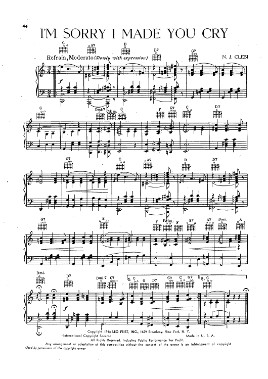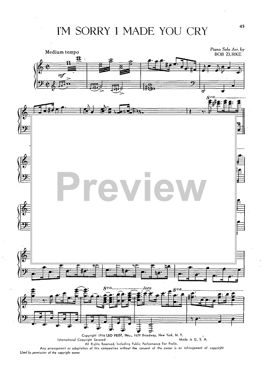 Digital Sheet Music for I'm Sorry I Made You Cry by Bob Zurke, N. J. Clesi scored for Piano Solo; id:423065