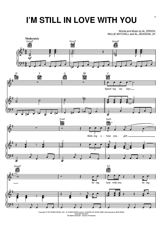 Digital Sheet Music for I'm Still In Love With You by Al Green, Willie Mitchell, Al Jackson Jr scored for Piano/Vocal/Chords; id:367521