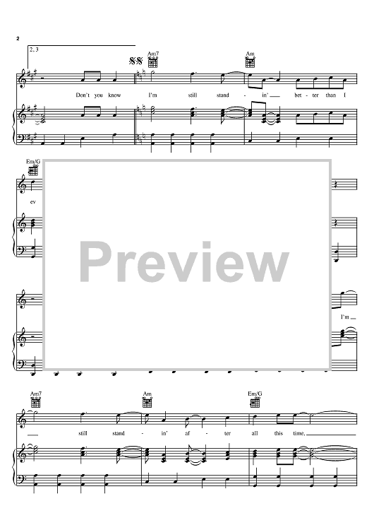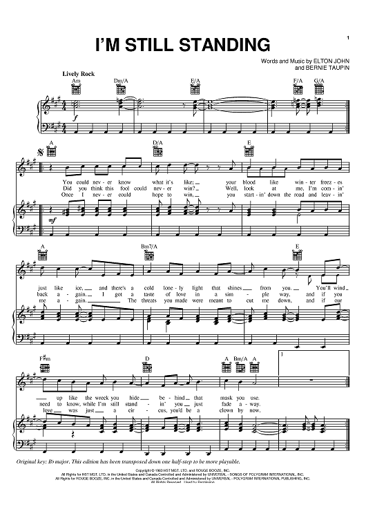 Digital Sheet Music for I'm Still Standing by Elton John, Bernie Taupin scored for Piano/Vocal/Chords; id:368206
