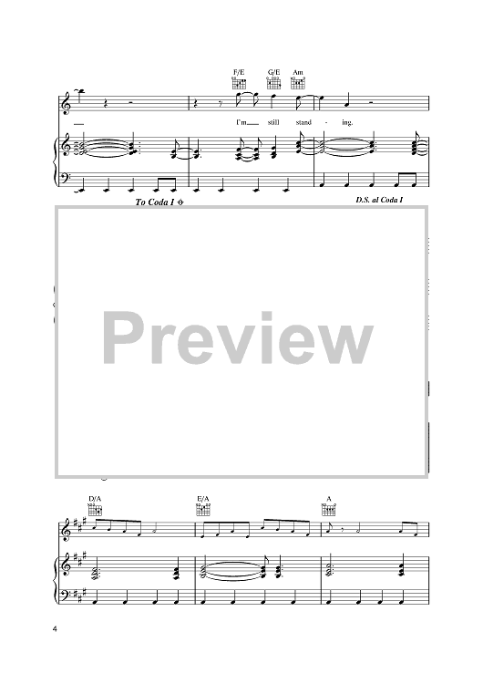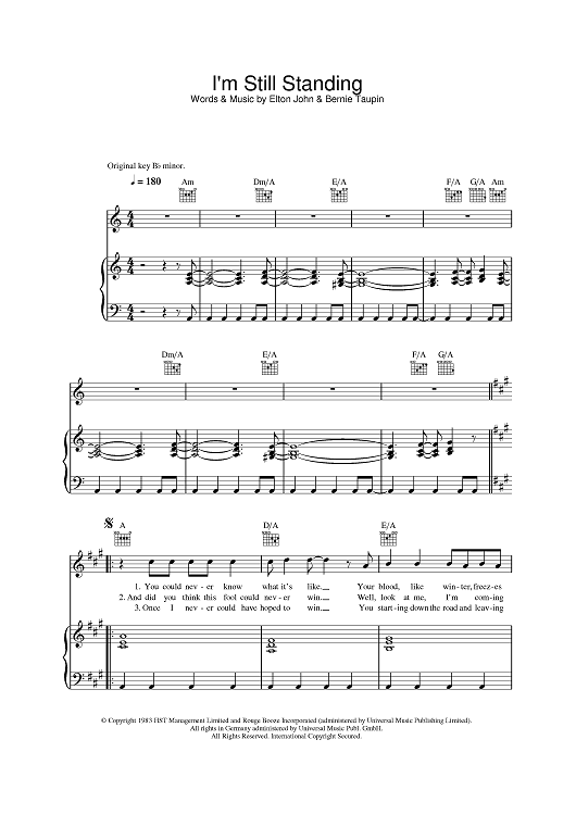 Digital Sheet Music for I'm Still Standing by Elton John, Bernie Taupin scored for Piano/Vocal/Chords; id:401227
