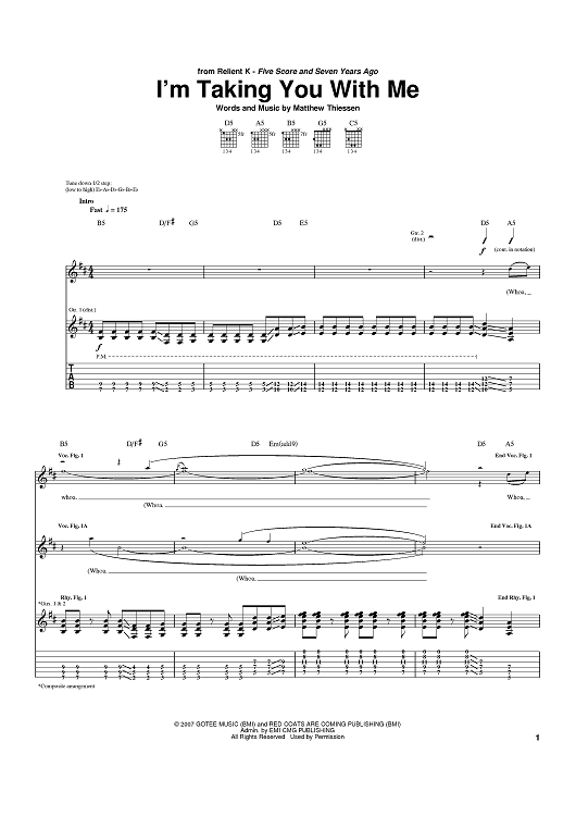 Digital Sheet Music for I'm Taking You With Me by Relient K, Matt Thiessen scored for Guitar Tab; id:397522
