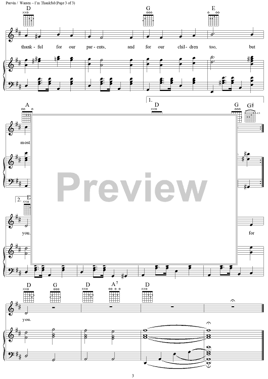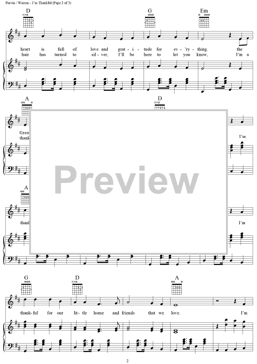 Digital Sheet Music for I'm Thankful by Ted Purvin, Glenn Warren scored for Piano/Vocal/Chords; id:108959
