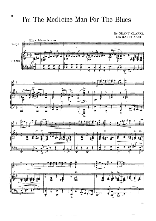 Digital Sheet Music for I'm The Medicine Man For The Blues by , Harry Akst, George J. Trinkaus, Grant Clarke scored for Banjo/Piano; id:418717