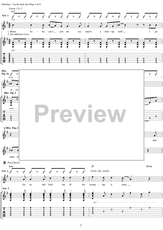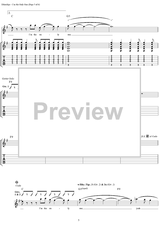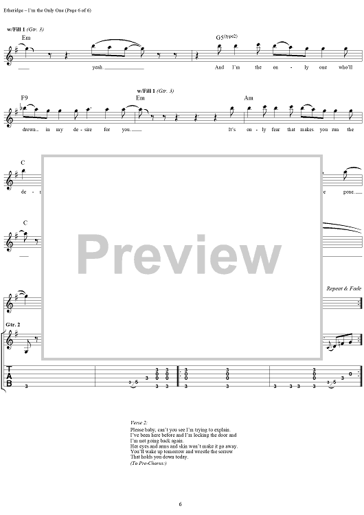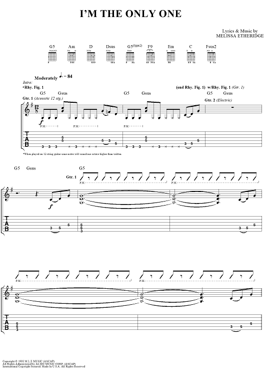 "I'm the Only One" Sheet Music by Melissa Etheridge