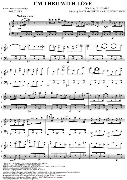 Digital Sheet Music for I'm Thru With Love by Gus Kahn, Bob Zurke, Matt Malneck, Fud Livingston scored for Piano Solo; id:251348