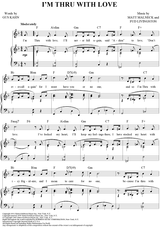 Digital Sheet Music for I'm Thru With Love by Gus Kahn, Marilyn Monroe, Matt Malneck, Fud Livingston scored for Piano/Vocal/Chords; id:422798