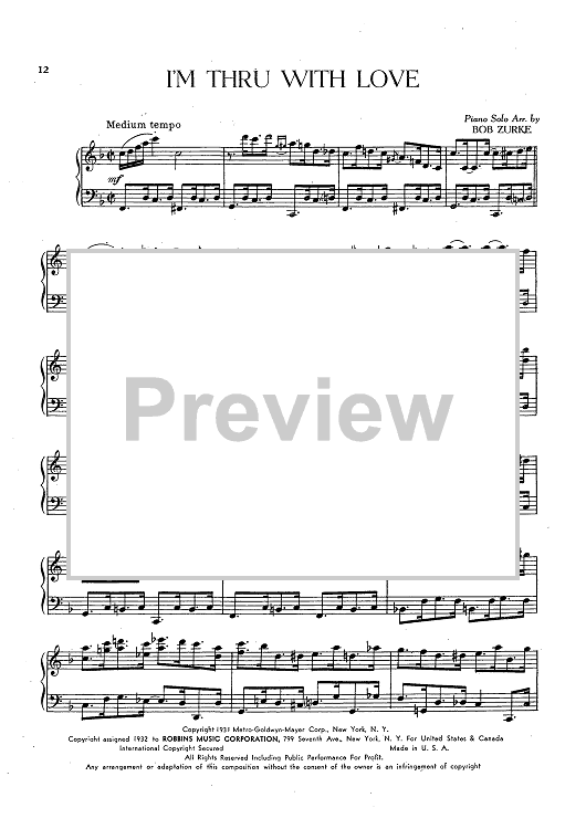 "I'm Thru With Love" Sheet Music by Bob Zurke