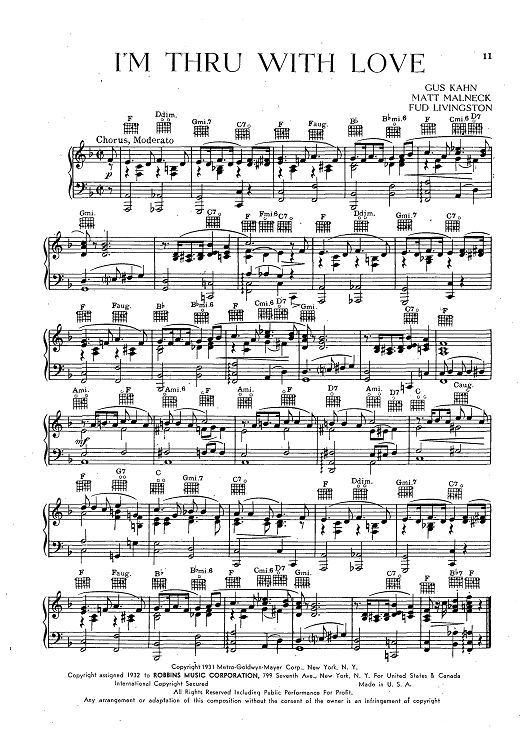 Digital Sheet Music for I'm Thru With Love by Gus Kahn, Bob Zurke, Matt Malneck, Fud Livingston scored for Piano Solo; id:423054