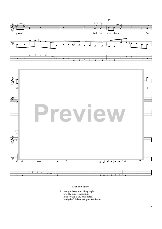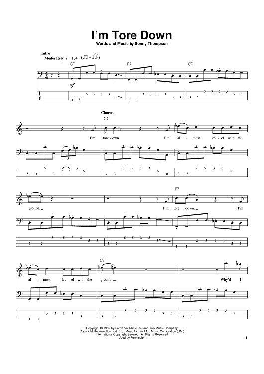 Digital Sheet Music for I'm Tore Down by Eric Clapton, Freddie King, Sonny Thompson scored for Bass Tab; id:394758