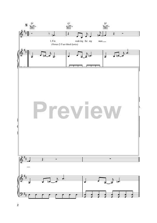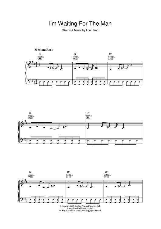 Digital Sheet Music for I'm Waiting For The Man by Lou Reed scored for Piano/Vocal/Chords; id:398839