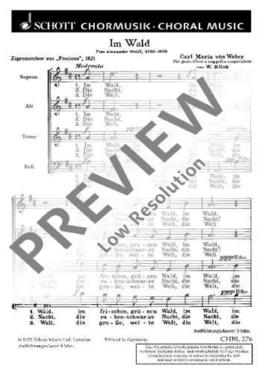 Digital Sheet Music for Im Wald - Choral Score by Carl Maria Von Weber scored for Mixed Choir (satb); id:471975