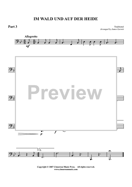 Digital Sheet Music for Im Wald und auf der Heide - Part 3 by , James Garrett, Traditional scored for Euphonium/Tuba Trio; id:366657