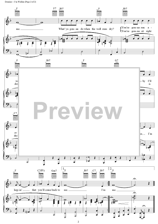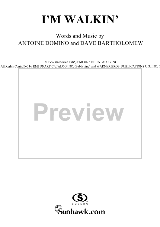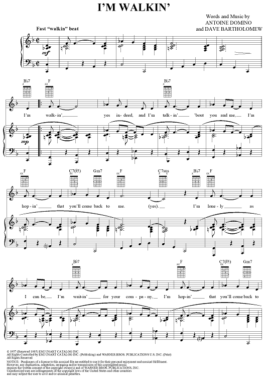 Digital Sheet Music for I'm Walkin' by Dave Bartholomew, Fats Domino scored for Piano/Vocal/Chords; id:120332