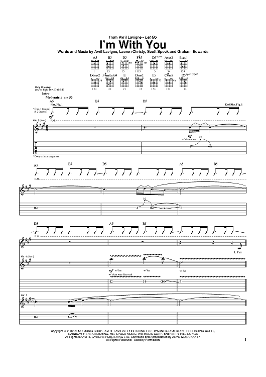 Digital Sheet Music for I'm With You by Lauren Christy, Avril Lavigne, Scott Spock scored for Guitar Tab; id:371179