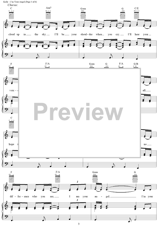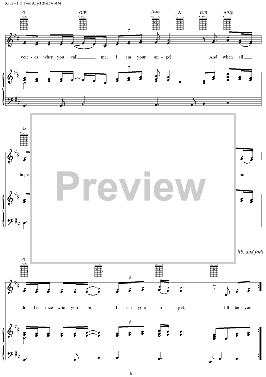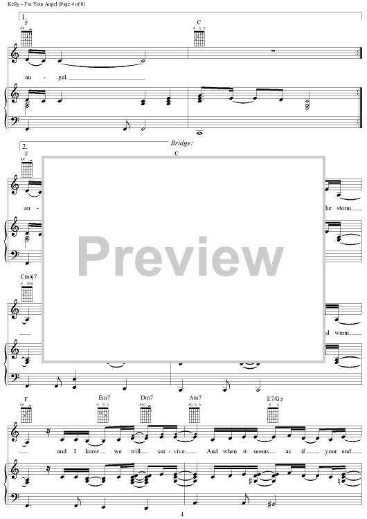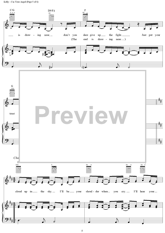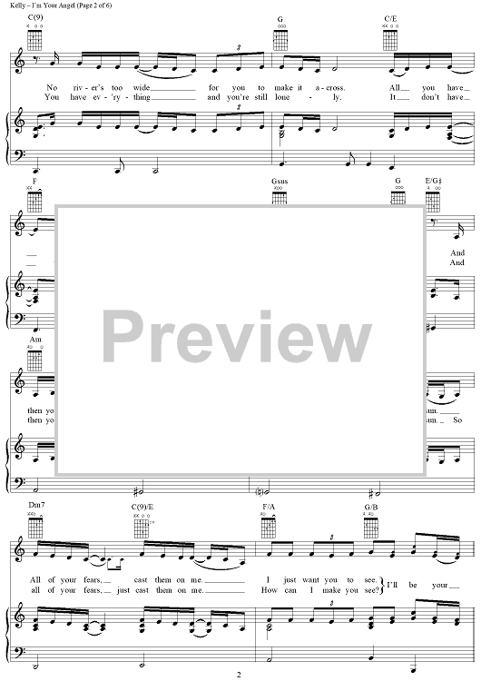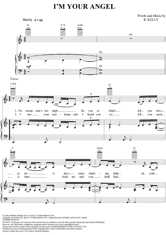Digital Sheet Music for I'm Your Angel by Celine Dion, R. Kelly scored for Piano/Vocal/Chords; id:112704